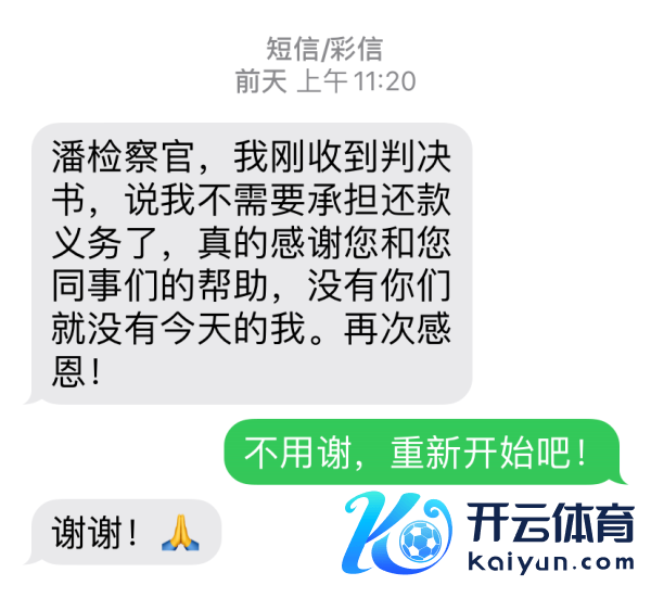 牛年开始,溧阳市东谈主民张望院的张望官潘霞的手机收到了一条相等的短信:“潘张望官,我刚收到判决书,说我不需要承担还款义务了,确凿感谢您和您共事们的匡助,莫得你们就莫得今天的我!”这条千里甸甸的短信,源于张望官的“抽丝剥茧”概括监督,让一位母亲和她的女儿得以卸下东谈主生重任开启全新的生活。