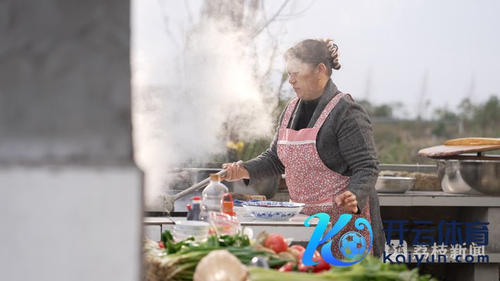 潘现琴在大灶台炒菜