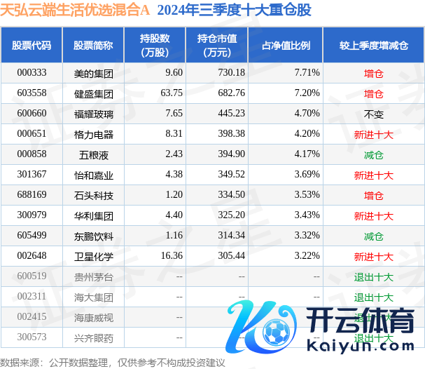 天弘云表生计优选混杂A为混杂型-生动基金,字据最新一期基金季报显露,该基金钞票设立:股票占净值比86.55%,无债券类钞票,现款占净值比15.4%。基金十大重仓股如下: