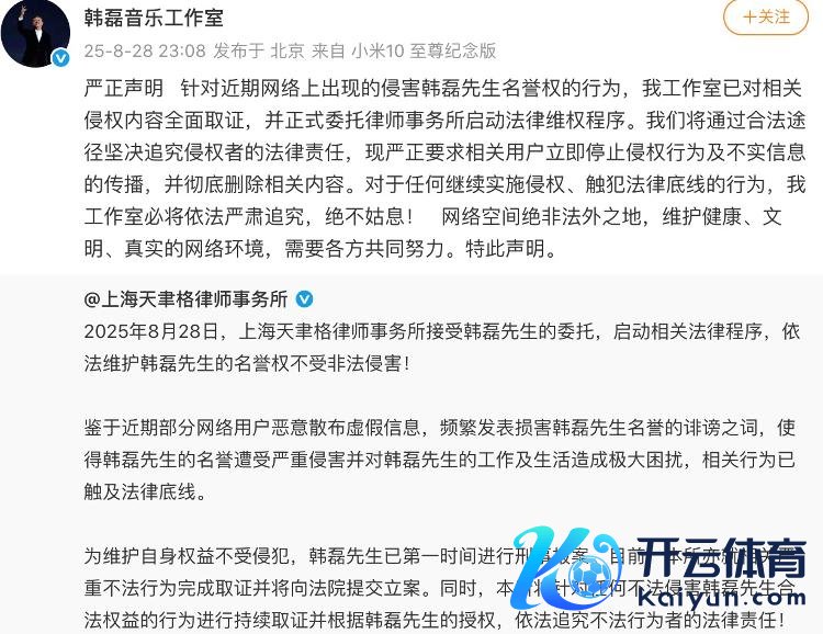 28日晚23:08,韩磊音乐师作室发布严正声明,默示针对近期网罗上出现的“侵害韩磊先生名誉权”的行径体育游戏app平台,“将通过正当阶梯刚烈根究侵权者的法律拖累……条款筹谋用户立即罢手侵权行径及装假信息的传播。”